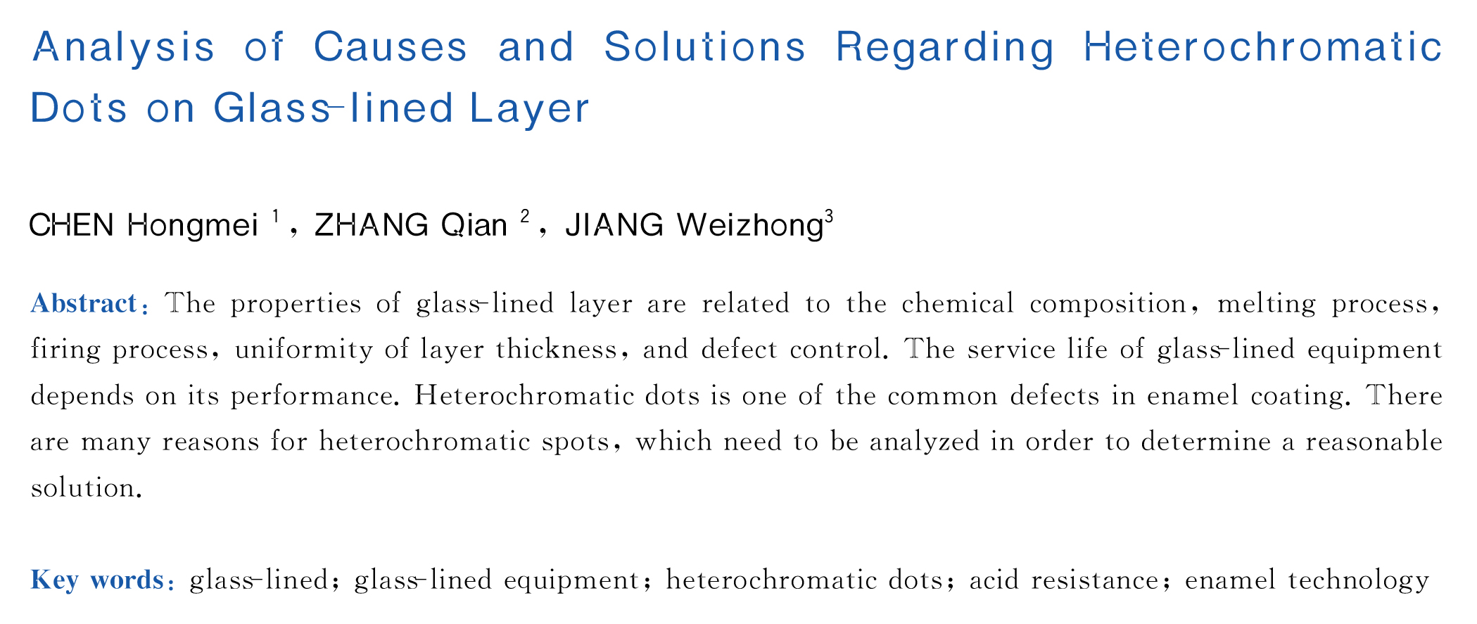 关键词:搪玻璃;搪玻璃设备;异色点;耐酸性;搪烧工艺